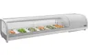 De Saro sushi vitrine is voorzien van een hoogrendement compressor en een dubbele verdamper. De gebogen ruit geeft een maximaal zicht op de uit te stallen producten. Uiteraard is deze opzetvitrine ook geschikt voor andere voedselproducten producten.
