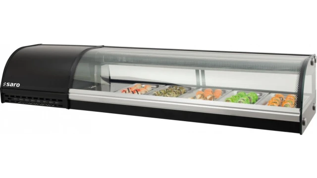 Saro sushi showcase SV 1800, geschikt voor 7x 1/3 GN , 25 mm diep, materiaal is van gepoedercoat staal en aan de binnenkant RVS.