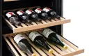 Saro wijnkast WKS 162 materiaal buiten gepoedercoat staal, binnenkant van kunststof zwart, 8 verstelbare houten roosters, interne LED wit verlichting aan de bovenkant, analoge thermometer, dubbel glasdeur met touch screen, 2 transport rolletjes aan de achterkant.