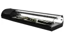 Moderne en elegante opzet koelvitrine uit Spanje. Met presentatie mogelijkheden op 1 niveau van koude gerechten. De geharde glazen ombouw is voorzien van zuinige LED verlichting. Aan de achterzijde voorzien van schuifdeuren en een digitale temperatuur uitlezing. FCKW vrij en voorzien van een geventileerde condensor.
