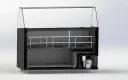 Een eenvoudige maar doeltreffende vitrine. Door middel van de glazen schuifdeksels wordt de vrieskist geopend en gesloten