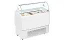 Verrijdbare geforceerde schepijsvitrine met plexiglas kantelklep aan de achterzijde, en een ronde ruit aan de voorzijde. De consumptie-ijsvitrine is voorzien van extra opslagruimte onder de presentatie laag. Deze professionele horeca schepijsvitrine is zeer geschikt voor cafetaria, wok restaurant, hotels en de kleine ijssalon.