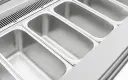 Geschikt voor het presenteren van 6x 1/3 GN of 6x Napoli-bakken, met ruimte voor nog eens 6 bakken in het onderste opslagvak