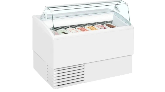De consumptie-ijsvitrine is voorzien van een deur voor de korte termijn opslag van het schepijs. Deze professionele horeca schepijsvitrine is zeer geschikt voor cafetaria, wok restaurant, hotels en de kleine ijssalon.