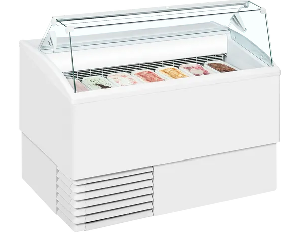 De consumptie-ijsvitrine is voorzien van een deur voor de korte termijn opslag van het schepijs. Deze professionele horeca schepijsvitrine is zeer geschikt voor cafetaria, wok restaurant, hotels en de kleine ijssalon.