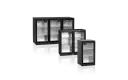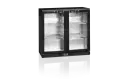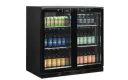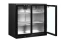 De DB-serie backbars wordt geleverd met 1, 2 of 3 deuren met dubbel gehard glas. Kies tussen schuifdeuren of draaideuren. De backbar heeft een zwarte buitenzijde, een stucco aluminium interieur en wit geplastificeerde draadplanken voor eenvoudig onderhoud.