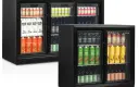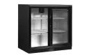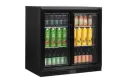 De DB-serie backbars wordt geleverd met 1, 2 of 3 deuren met dubbel gehard glas. Kies tussen schuifdeuren of draaideuren. De backbar heeft een zwarte buitenzijde, een stucco aluminium interieur en wit geplastificeerde draadplanken voor eenvoudig onderhoud.