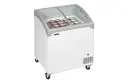 De vele maten maken het model zeer geschikt voor kleine winkels en broodjeszaken met beperkte ruimte, maar ook voor grotere winkels, tankstations, supermarkten enz. Alle modellen zijn milieuvriendelijk en kunnen worden voorzien van eigen bedrukking voor een betere presentatie van de inhoud van de vrieskist. De SCEB-serie heeft een lagere voorzijde dan achterzijde en gebogen glazen schuifdeksels.
