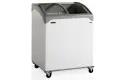 Elegante diepvrieskist met gebogen glazen schuifdeksels
