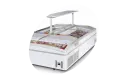 De SHALLOW-serie heeft een extra groot panoramaglasdeksel en is gebouwd voor standaard vrieseilandopstellingen. De units kunnen rug aan rug en met eindvriezers worden opgesteld. Het grote, schuine panoramaschuifdeksel zorgt voor volledige zichtbaarheid van de producten in de kast. De automatische ontdooifunctie verlaagt de onderhoudskosten en voorkomt ijsvorming aan de binnenkant. Ze behoren met hun lage elektriciteitsverbruik tot de meest efficiënte units die er te vinden zijn.