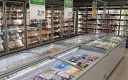Supermarkt vriezer of koeler met extra grote panoramaglasdeksels