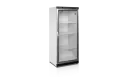 De witte koelkast met glasdeur is ideaal voor het tonen van frisdrank, bier, gebak en desserts.