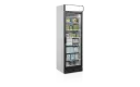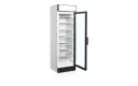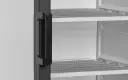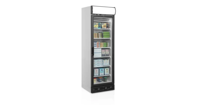 Displayvrieskast met verwarmde glazen deur, ventilatorkoeling, digitale thermometer, LED binnenverlichting, vaste planken, dooiwaterafvoer, 2 instelbare voetjes.