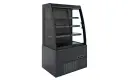 De koeling is uitgevoerd met een zwarte binnen- en buitenzijde, glazen zijwanden en interne LED-verlichting, wat zorgt voor optimale zichtbaarheid van uw producten en een moderne uitstraling. De ruimtebesparende schuifdeuren maken het apparaat gebruiksvriendelijk en praktisch in drukke winkelomgevingen.